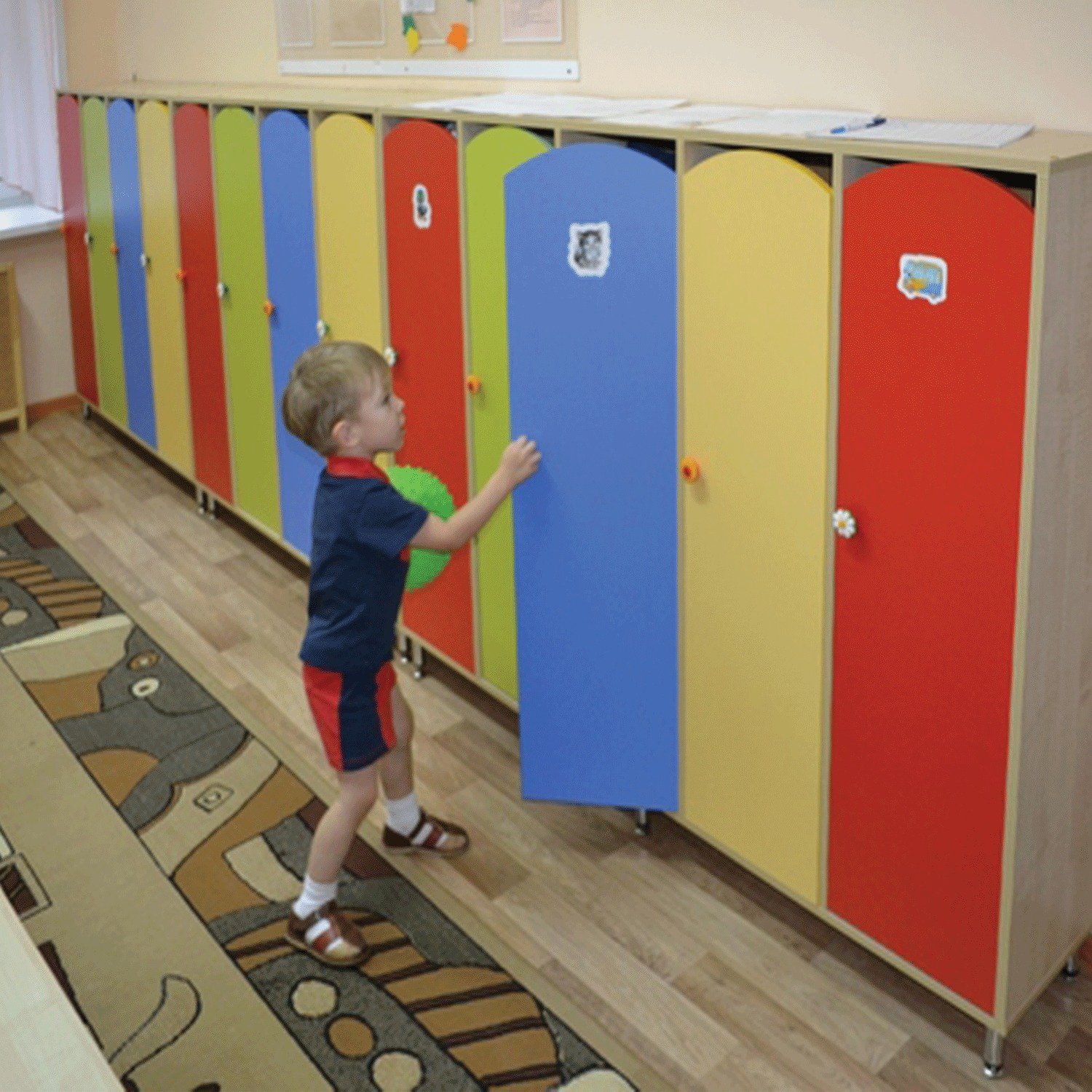 Шкаф предназначен для использования в детских садах, дошкольных учреждениях. Разноцветные фасады создадут позитивное настроение у детей.