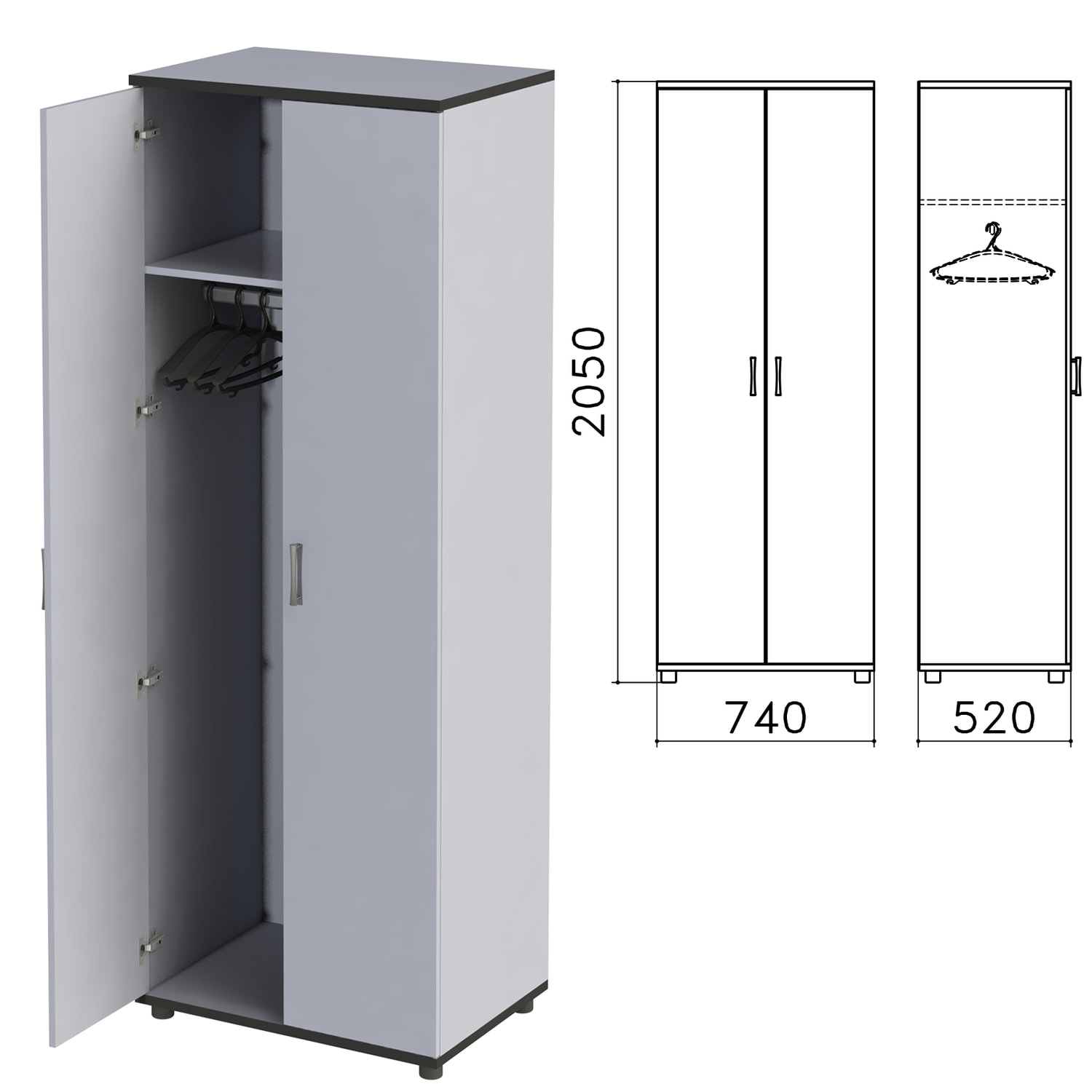 Шкаф для одежды "Монолит", 740х520х2050 мм, цвет серый, ШМ50.11