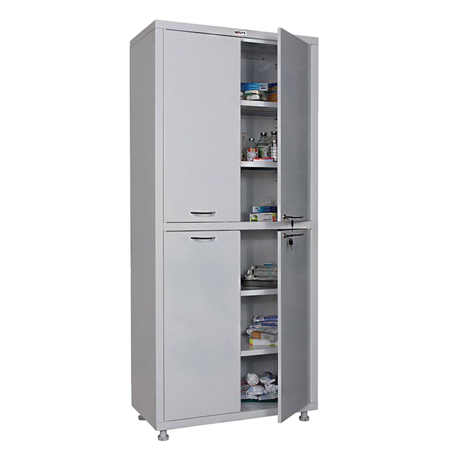 Шкаф предназначен для хранения медикаментов, инструментов, больничных документов, карточек пациентов в медицинских учреждениях и организациях.