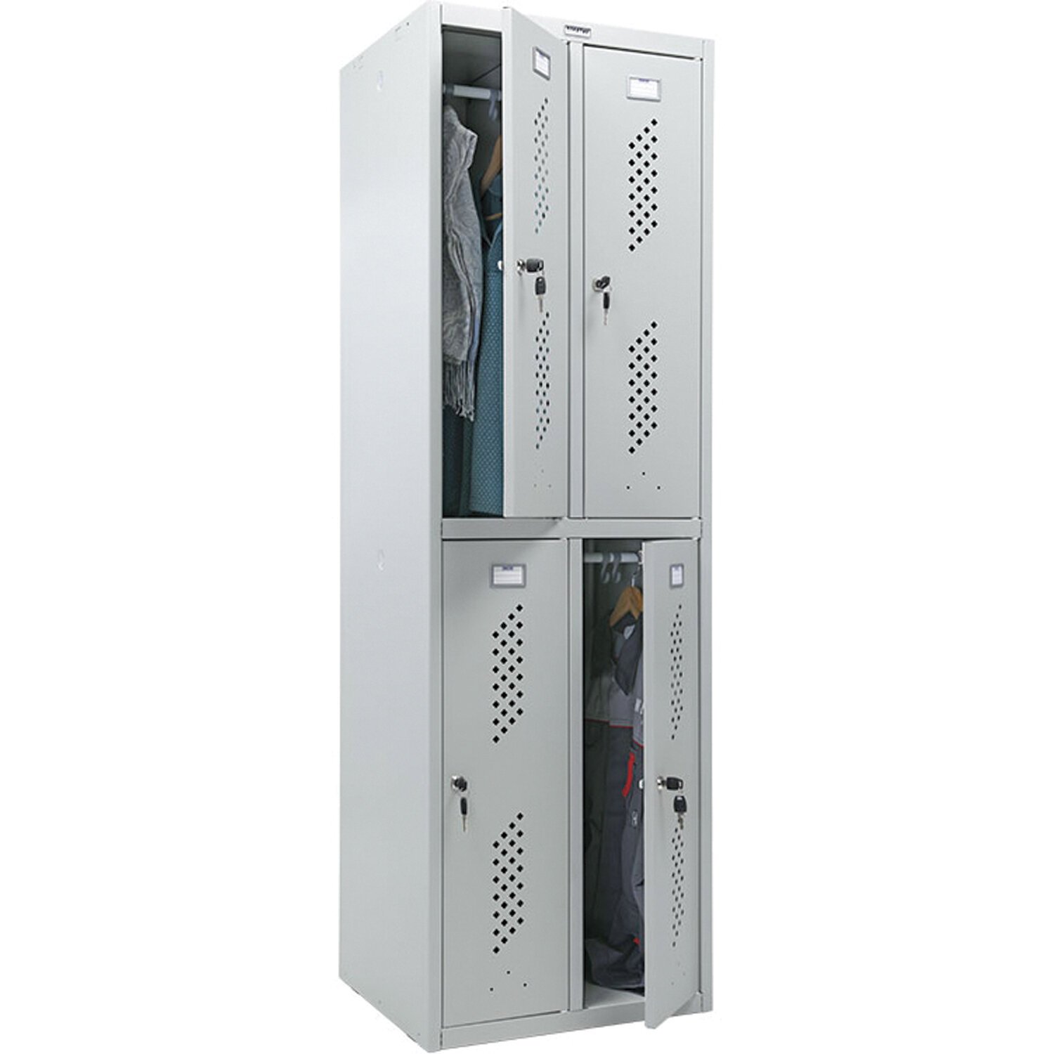 Шкаф имеет 4 раздельные секции и предназначен для 4 пользователей.