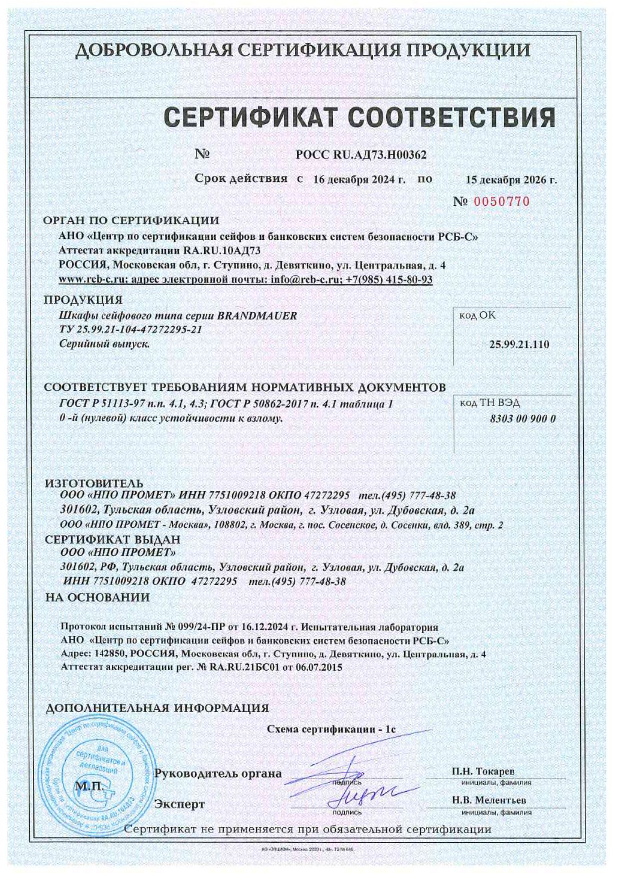 | Соответствует требованиям ГОСТа | ГОСТ Р 50862-2017 |