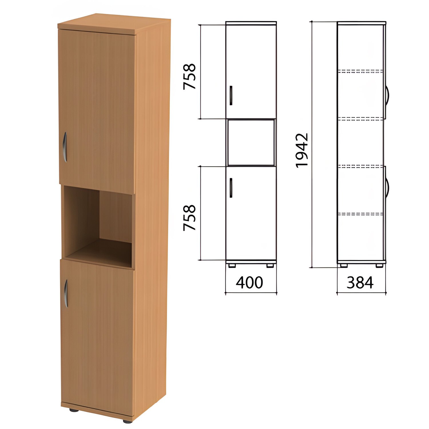 Шкаф полузакрытый "Этюд", 400х384х1942 мм, цвет бук бавария (КОМПЛЕКТ)