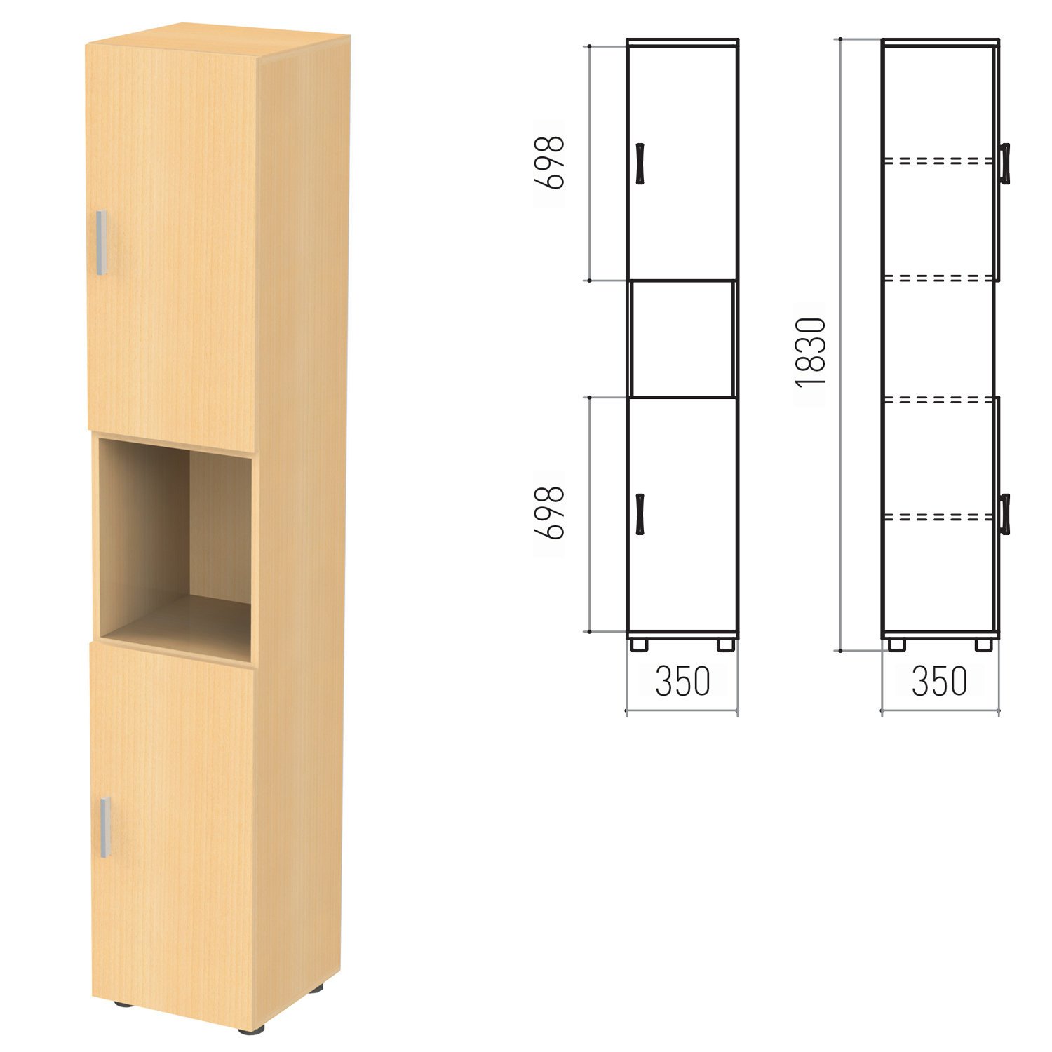 Шкаф полузакрытый "Канц", 350х350х1830 мм, цвет бук невский (КОМПЛЕКТ)