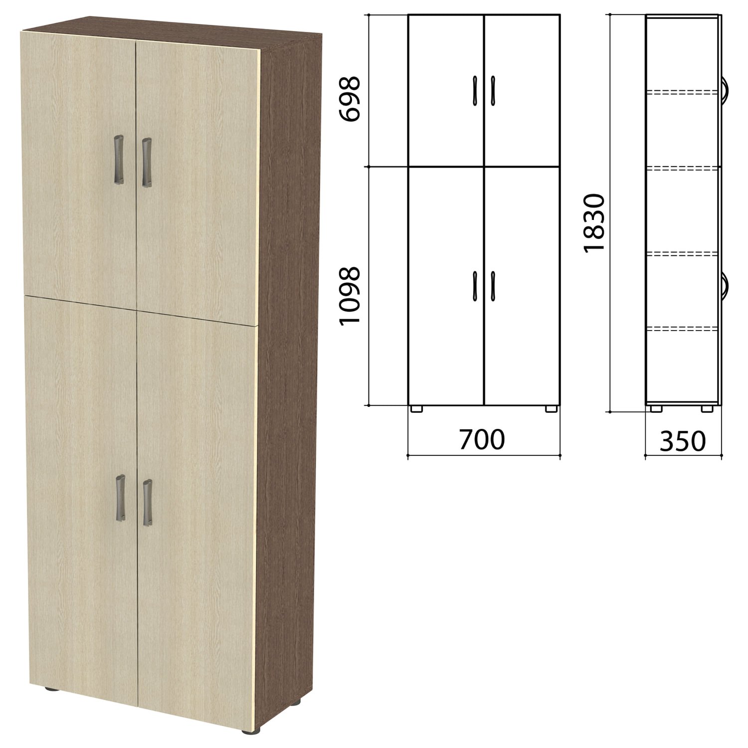 Шкаф закрытый "Канц", 700х350х1830 мм, цвет венге/дуб молочный (КОМПЛЕКТ)