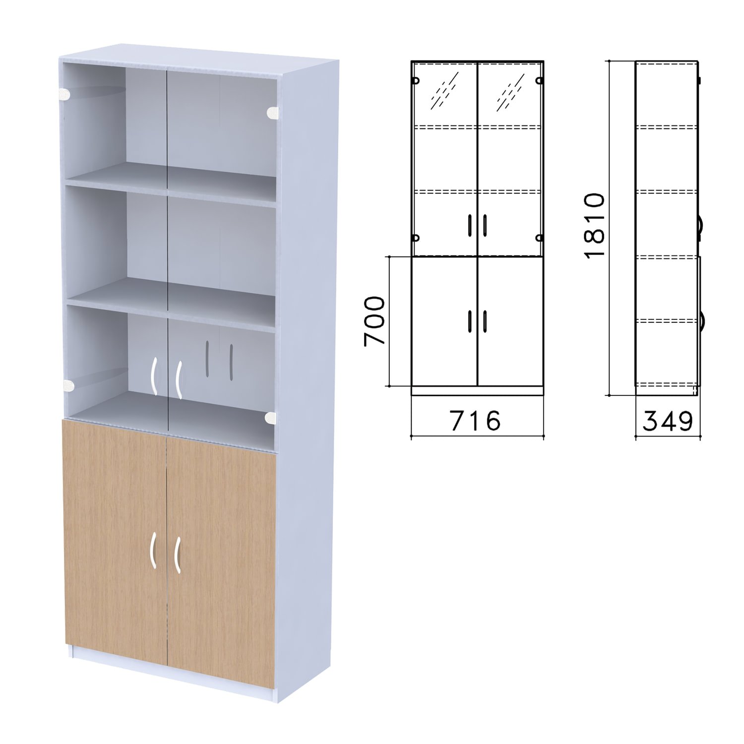 Шкаф закрытый со стеклом "Бюджет", 716х349х1810 мм, белый (КОМПЛЕКТ)