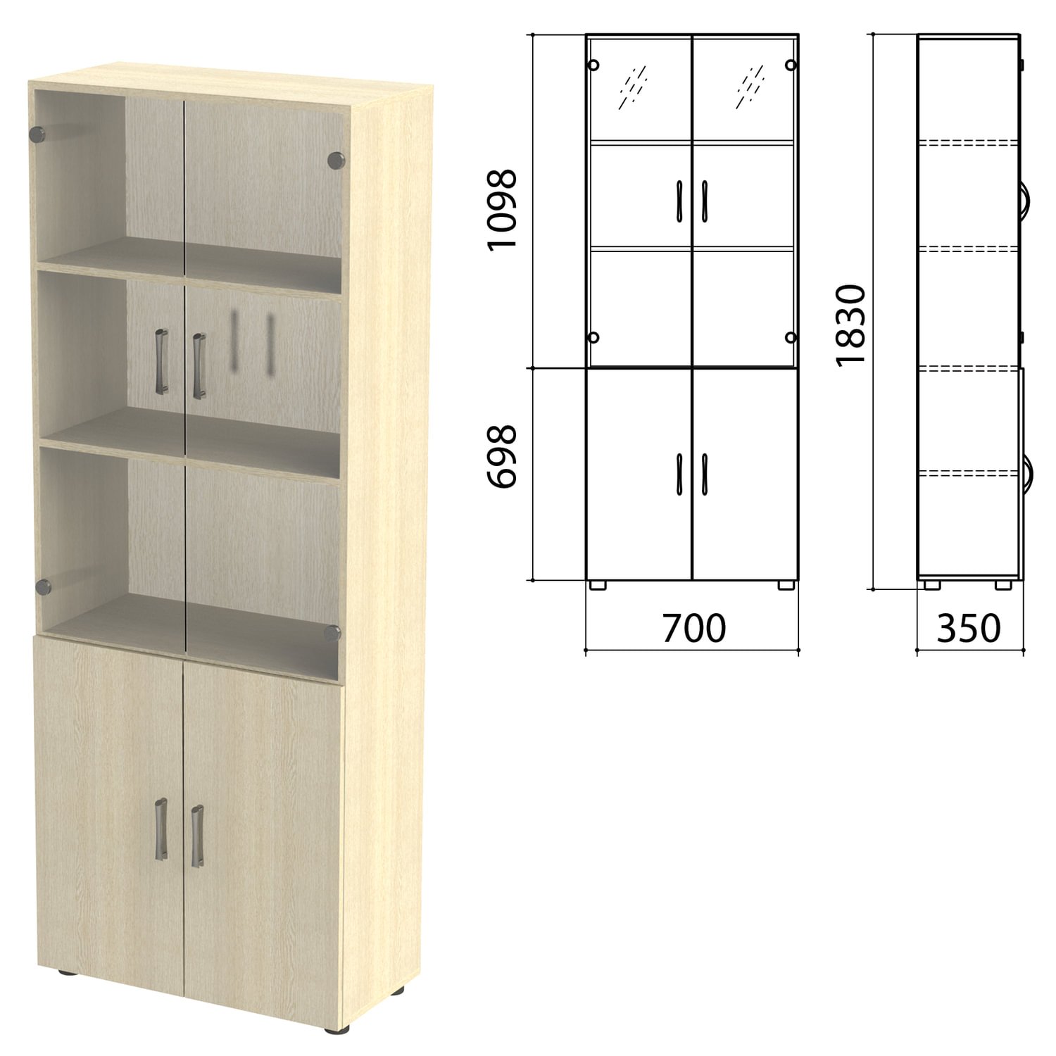 Шкаф закрытый со стеклом "Канц", 700х350х1830 мм, цвет дуб молочный (КОМПЛЕКТ)