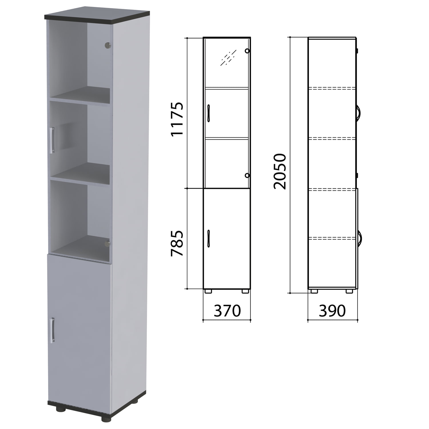 Шкаф закрытый со стеклом "Монолит", 370х390х2050 мм, цвет серый (КОМПЛЕКТ)