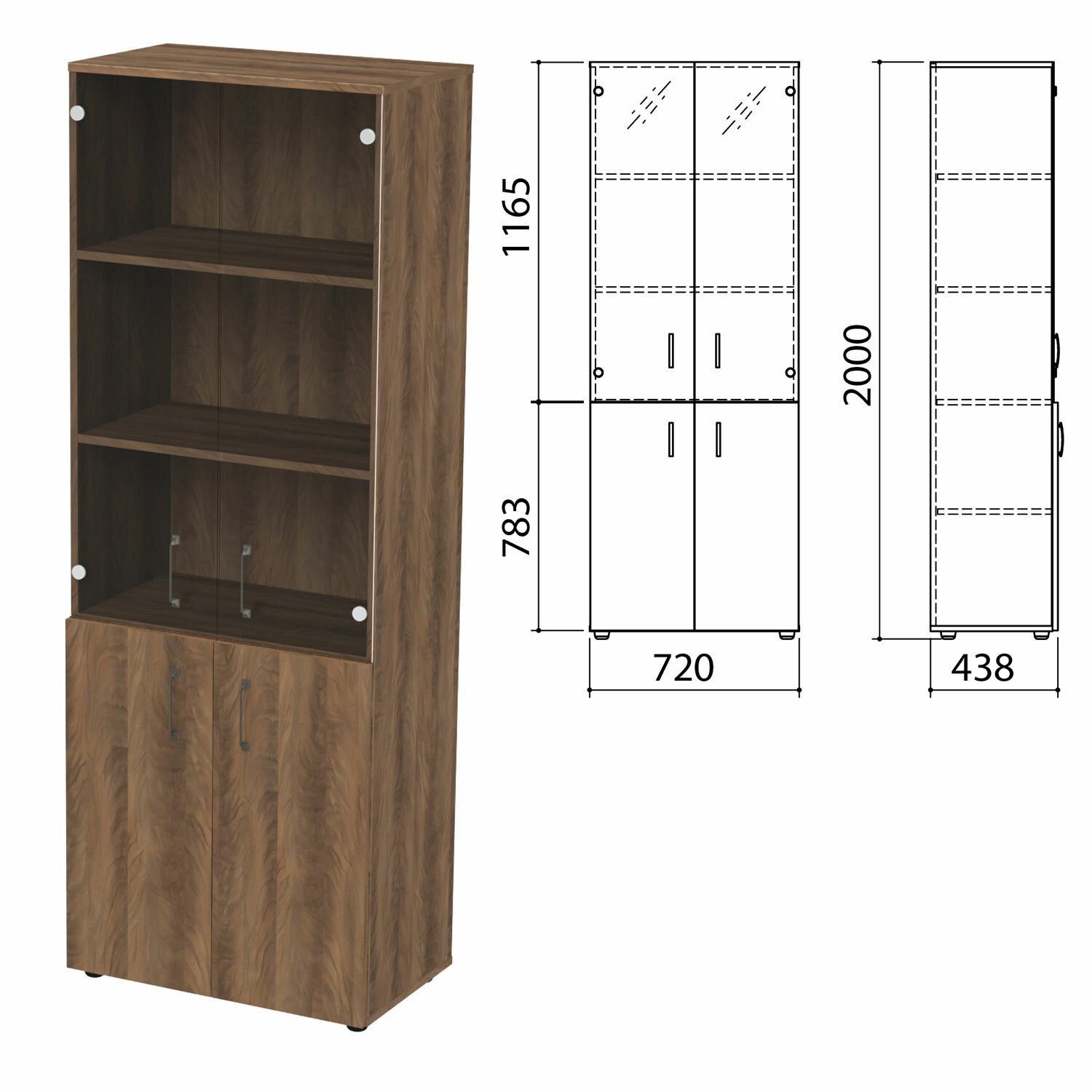 Шкаф закрытый со стеклом "Приоритет", 720х438х2000 мм, 4 полки, лагос (КОМПЛЕКТ)