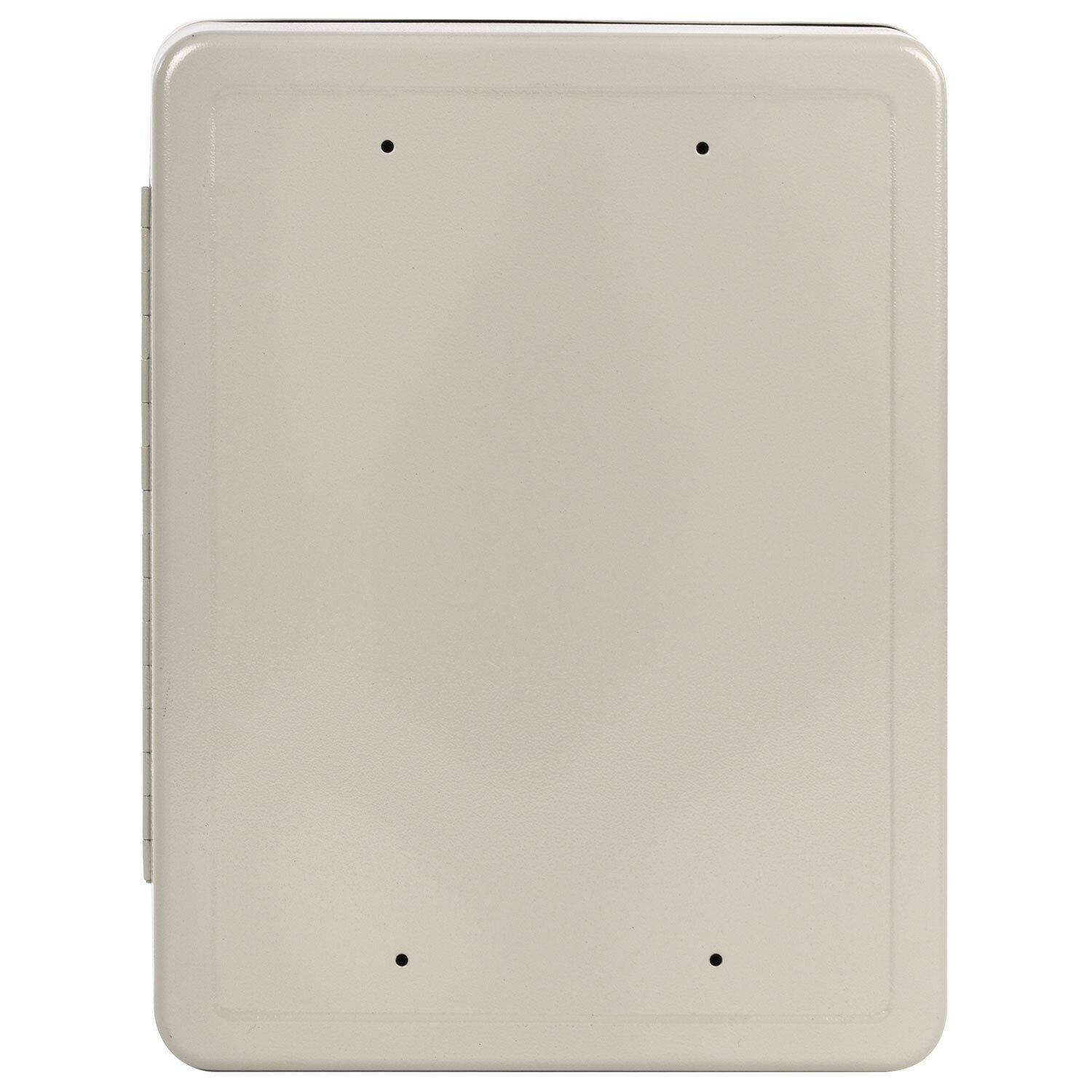 Изготовлен из прочной стали толщиной 0,8 мм и оснащен надёжным замком. Вмещает 140 ключей. Для размещения каждого ключа в шкафчике предусмотрен брелок с ярлычком. Размер - 370х280х80 мм.