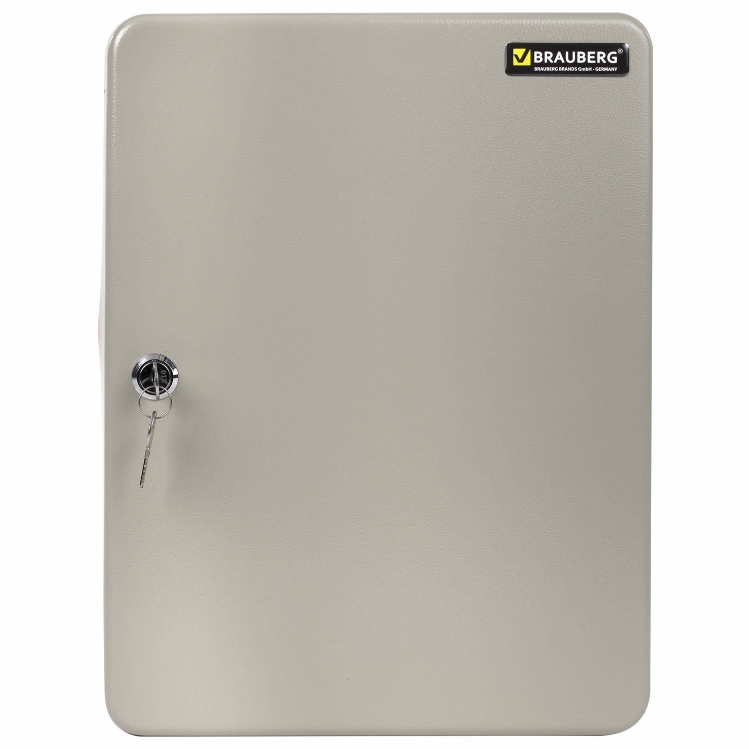 Шкафчик (Ключница) на 48 ключей BRAUBERG, 250х180х80 мм, с замком, + 48 брелоков, серый, 290338