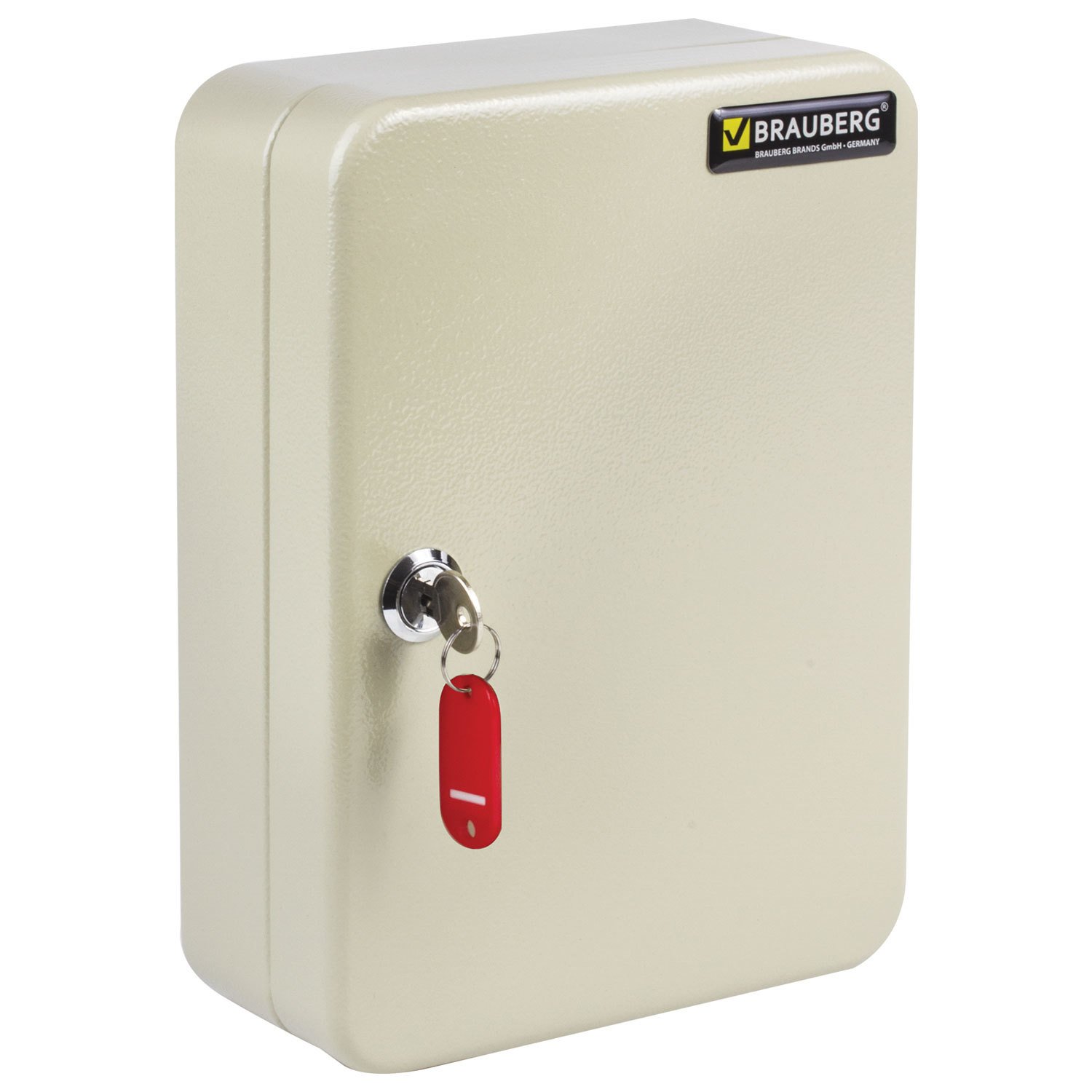 Шкафчик (Ключница) на 48 ключей BRAUBERG, 250х180х80 мм, с замком, + 48 брелоков, серый, 290338