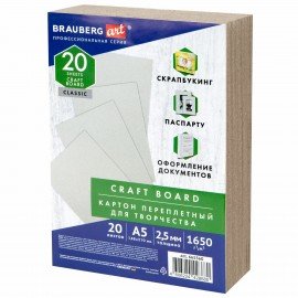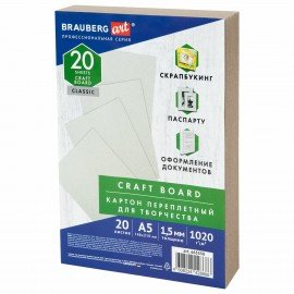 Картон переплетный, толщина 2,5 мм, А5 (148х210 мм), КОМПЛЕКТ 20 шт., BRAUBERG ART, 665560
