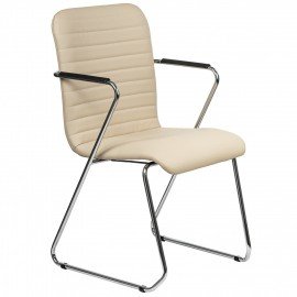 Кресло для приемных и переговорных "Samba", деревянные накладки, хромированный каркас, кожзам бежевый