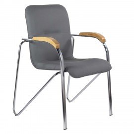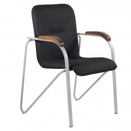 Кресло для приемных и переговорных "Samba", деревянные накладки, хромированный каркас, кожзам черный