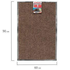 Коврик входной ворсовый влаго-грязезащитный 60х90 см, толщина 7 мм, ребристый, коричневый, LAIMA, 602868