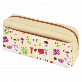 Пенал мягкий ЮНЛАНДИЯ, 2 отделения, полиэстер, "Llama", бежевый, 20х6х9 см, 228981