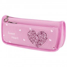 Пенал мягкий ЮНЛАНДИЯ, 2 отделения, полиэстер, "Heart", розовый, 21х6х9 см, 270258