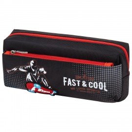 Пенал мягкий ЮНЛАНДИЯ, 2 отделения, полиэстер, "Speed car", черный, 21х6х9 см, 270273