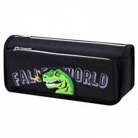 Пенал мягкий ЮНЛАНДИЯ, 2 отделения, полиэстер, "Dino doom", черный, 21х9х6 см, 271574