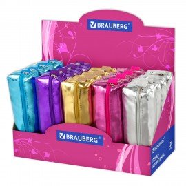Пенал-косметичка BRAUBERG прямоугольный, зеркальный, мягкий, "Pearl", 21х5х5 см, 229248