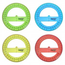 Транспортир 12 см, 360 градусов, ПИФАГОР, прозрачный, неоновый, ассорти, 210621