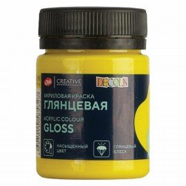 Краска акриловая глянцевая "Декола", банка 50 мл, желтая светлая, 2928213