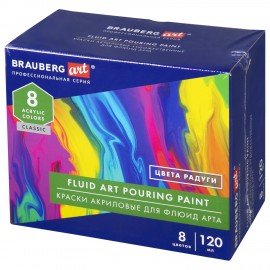 Краски акриловые для техники "Флюид Арт" (POURING PAINT), 8 цветов по 120 мл, Цвета радуги, BRAUBERG ART, 192242