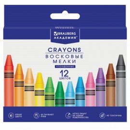 Восковые мелки BRAUBERG "АКАДЕМИЯ", НАБОР 12 цветов, 227283