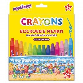 Восковые мелки утолщенные на масляной основе ЮНЛАНДИЯ "ДОМИКИ", 24 цвета, 273091