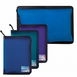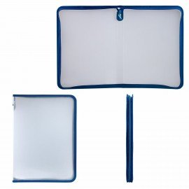 Папка на молнии пластиковая, А4, объемная, 335х240х20 мм, тонированная синяя, BRAUBERG, Россия, 226035