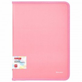 Папка объемная на молнии пластиковая BRAUBERG PASTEL, А4, 330х240 мм, 600 мкм, цвет лиловый, 271971