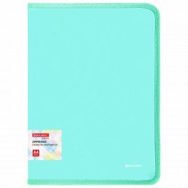 Папка объемная на молнии пластиковая BRAUBERG PASTEL, А4, 330х240 мм, 600 мкм, цвет мятный, 271973