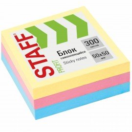 Блок самоклеящийся (стикеры) STAFF "PROFIT" 75х75мм, 300 листов, 3 цвета, 127146