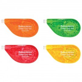 Корректирующая лента BRAUBERG PASTEL, 5 мм х 6 м, ассорти, блистер, 272666