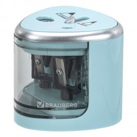 Точилка электрическая BRAUBERG DUAL (для 2 диаметров карандашей!), 4 батарейки АА, голубая, 270578