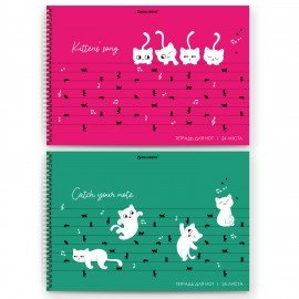 Тетрадь для нот А4, 24 л., BRAUBERG, обложка мелованный картон, вертикальная, на скобе, BRAUBERG, "Музыка", 125417