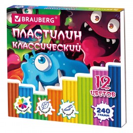 Пластилин классический "МОНСТРИКИ", 12 цв., 240г, СТЕК, ВЫСШЕЕ КАЧЕСТВО, BRAUBERG, 107356
