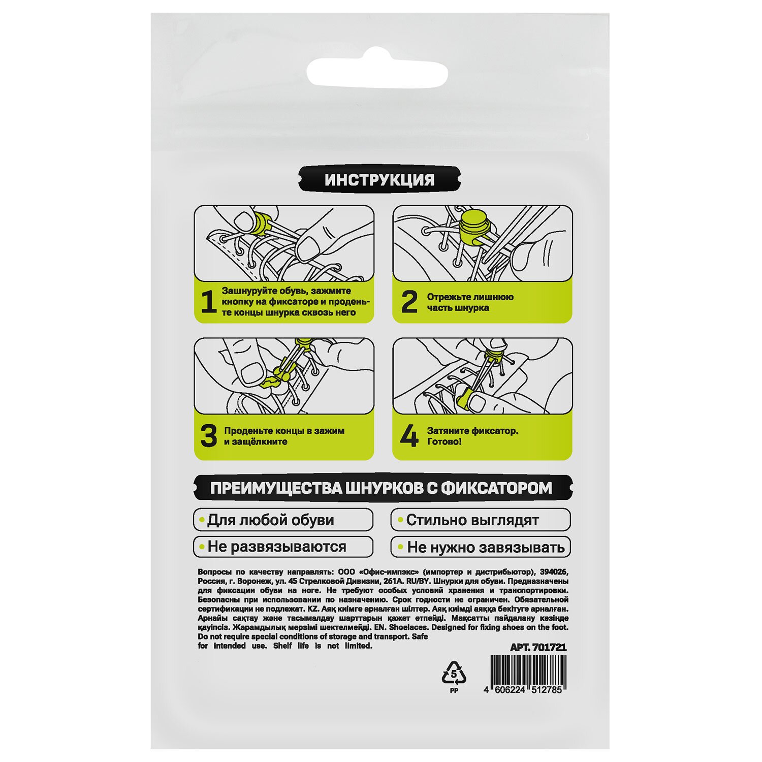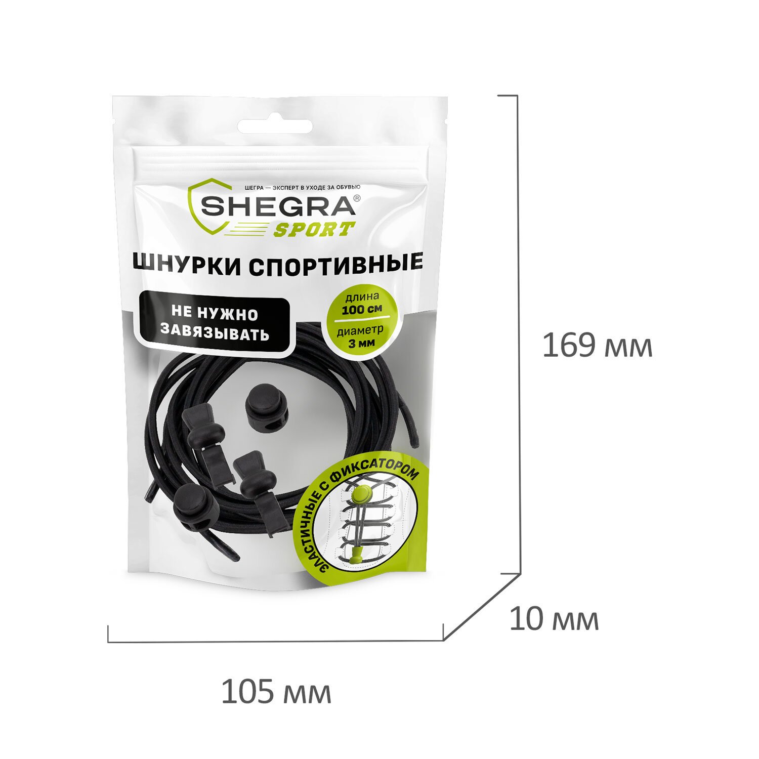 Шнурки круглые спортивные с фиксатором, 100 см, цвет ЧЕРНЫЙ, SHEGRA, 701721