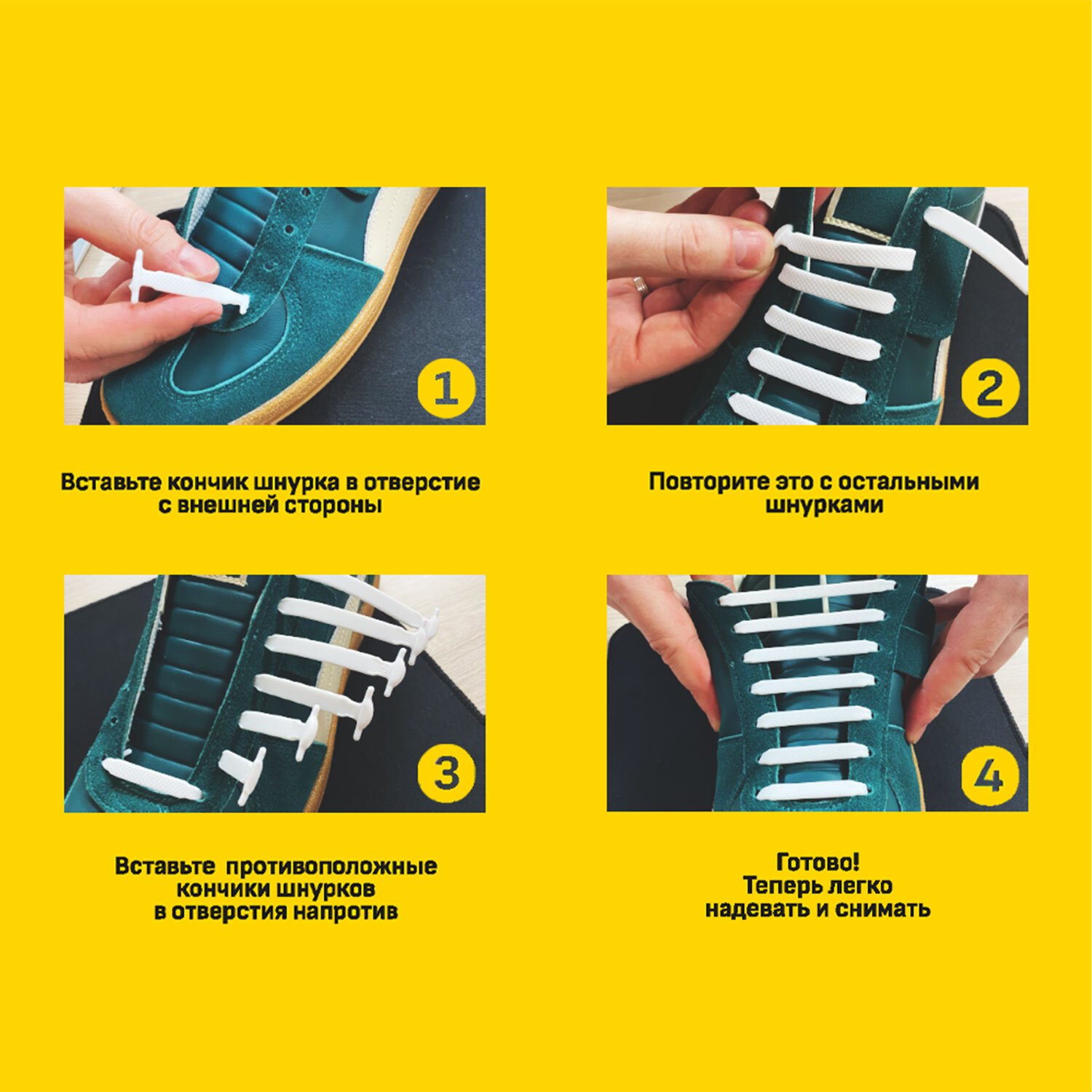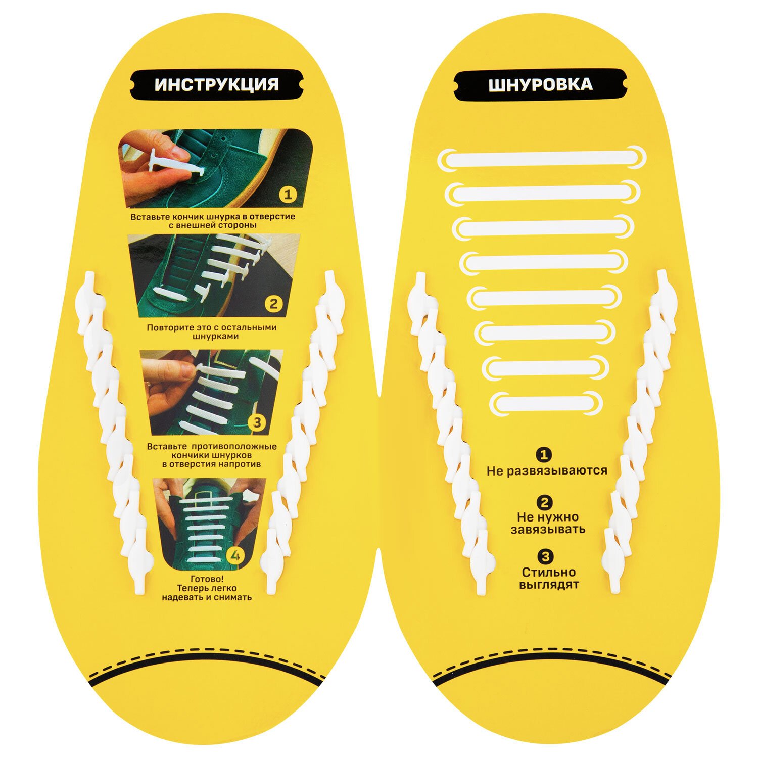 Шнурки силиконовые плоские БЕЛЫЕ 16 шт, ширина 7 мм, SHEGRA, 701716