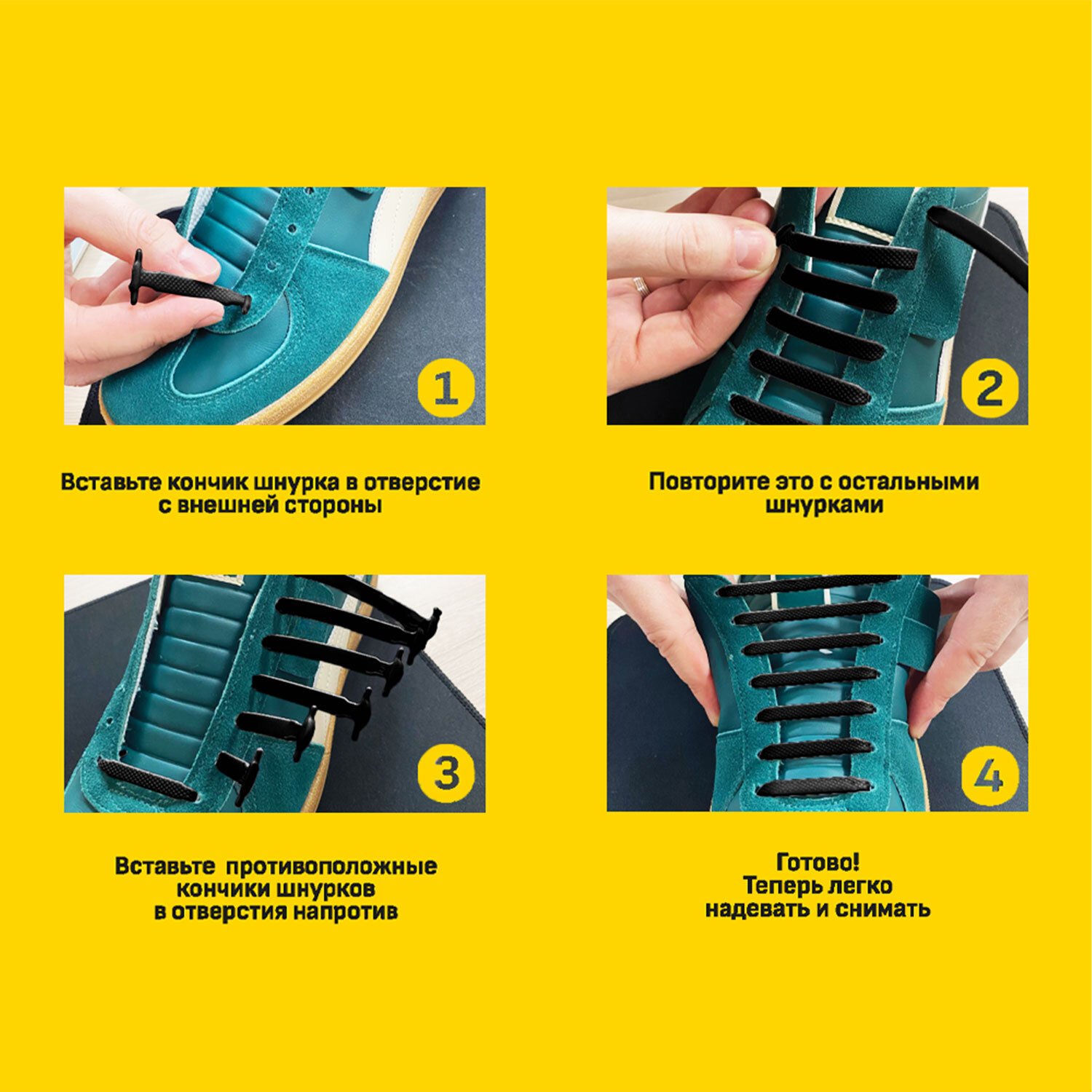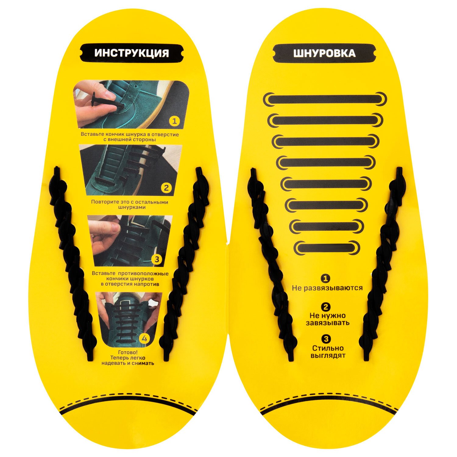Шнурки силиконовые плоские ЧЕРНЫЕ 16 шт, ширина 7 мм, SHEGRA, 701717