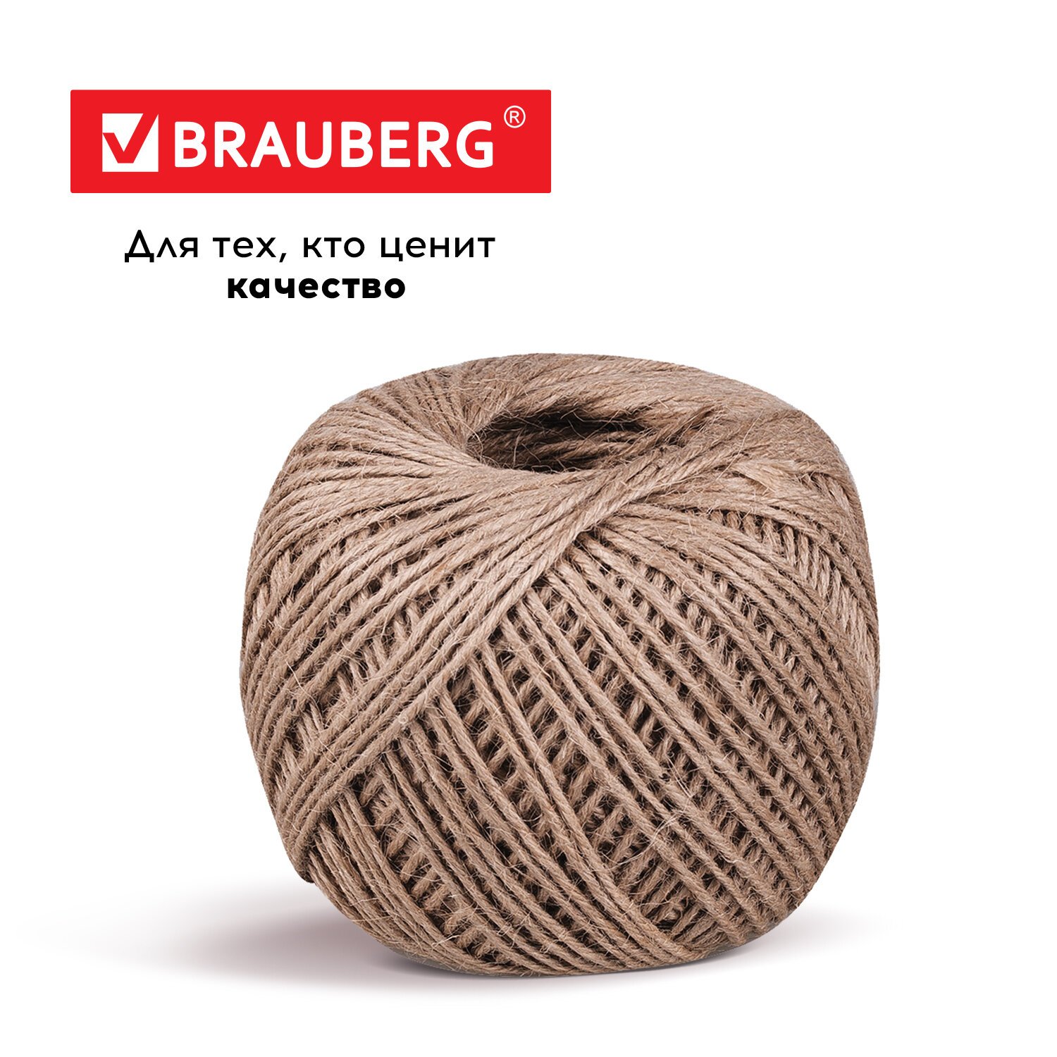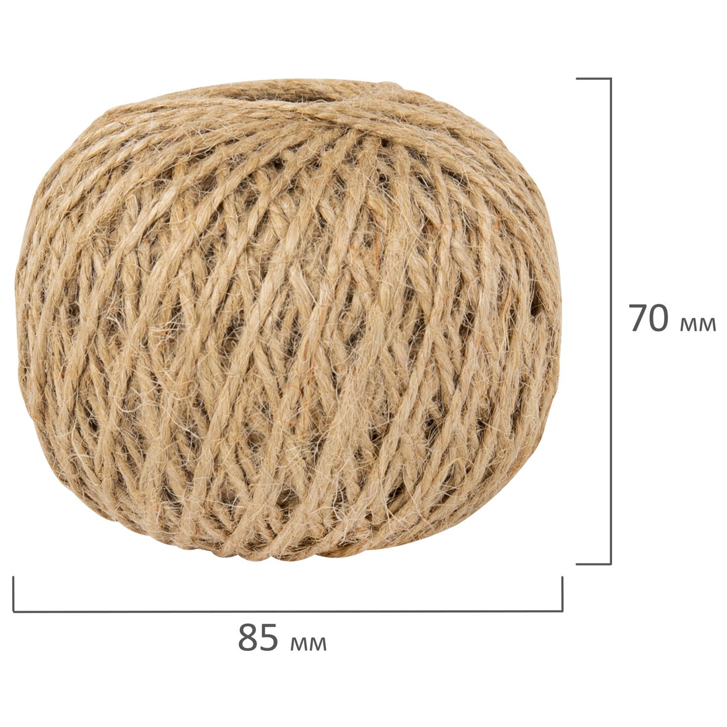 Шпагат джутовый полированный длина 100 м диаметр 1,5 мм, 2-х ниточный, BRAUBERG, 607947