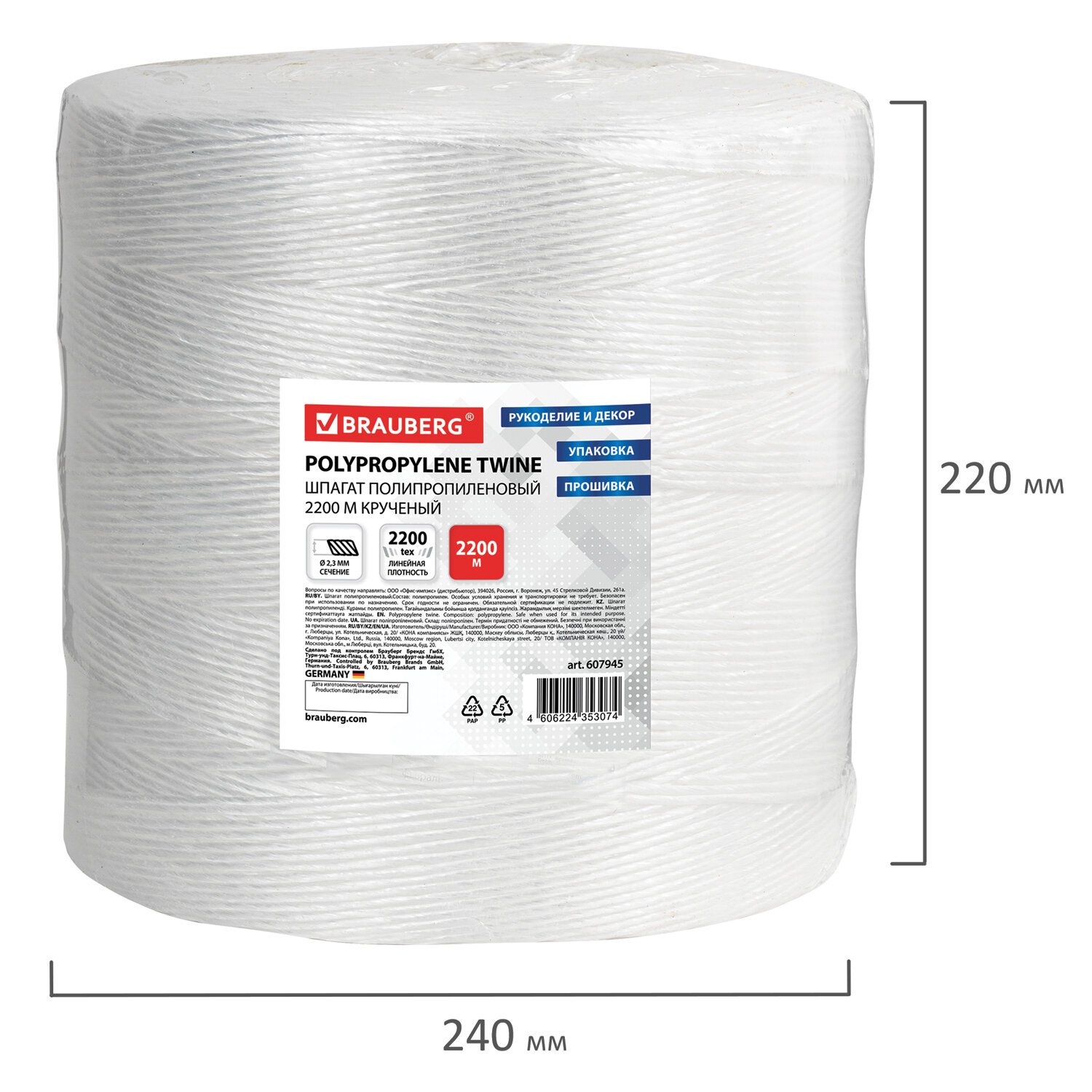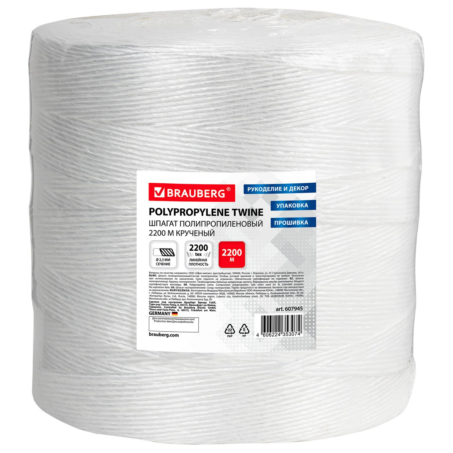 Шпагат полипропиленовый крученый длина 2200 м, диаметр 2,3 мм, BRAUBERG, 607945