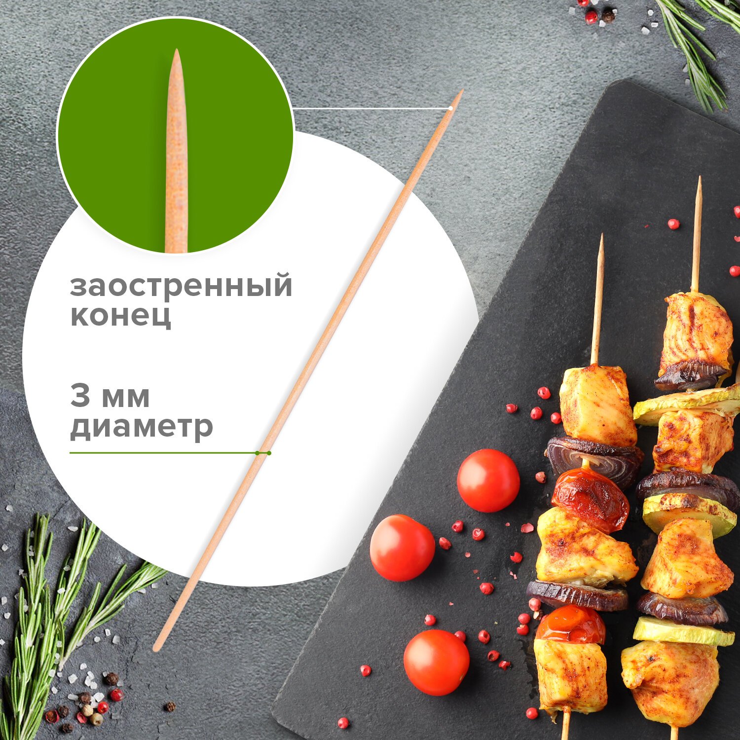 Шампуры для шашлыка PATERRA, КОМПЛЕКТ 100 шт., 200 мм, d=3 мм, бамбуковые, 401-697, 401697