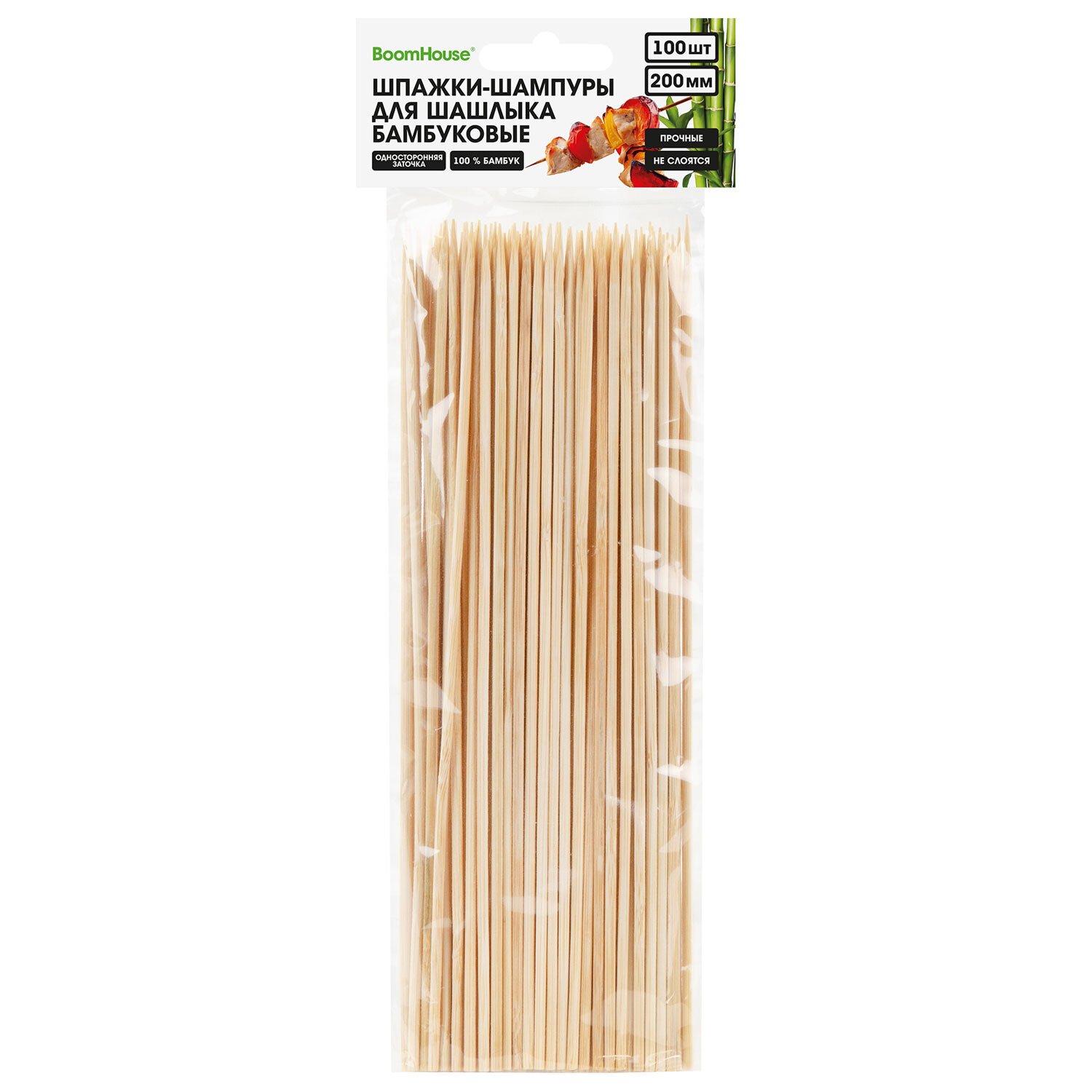 Шпажки-шампуры для шашлыка бамбуковые 200 мм, 100 штук, BOOMHOUSE, 701958