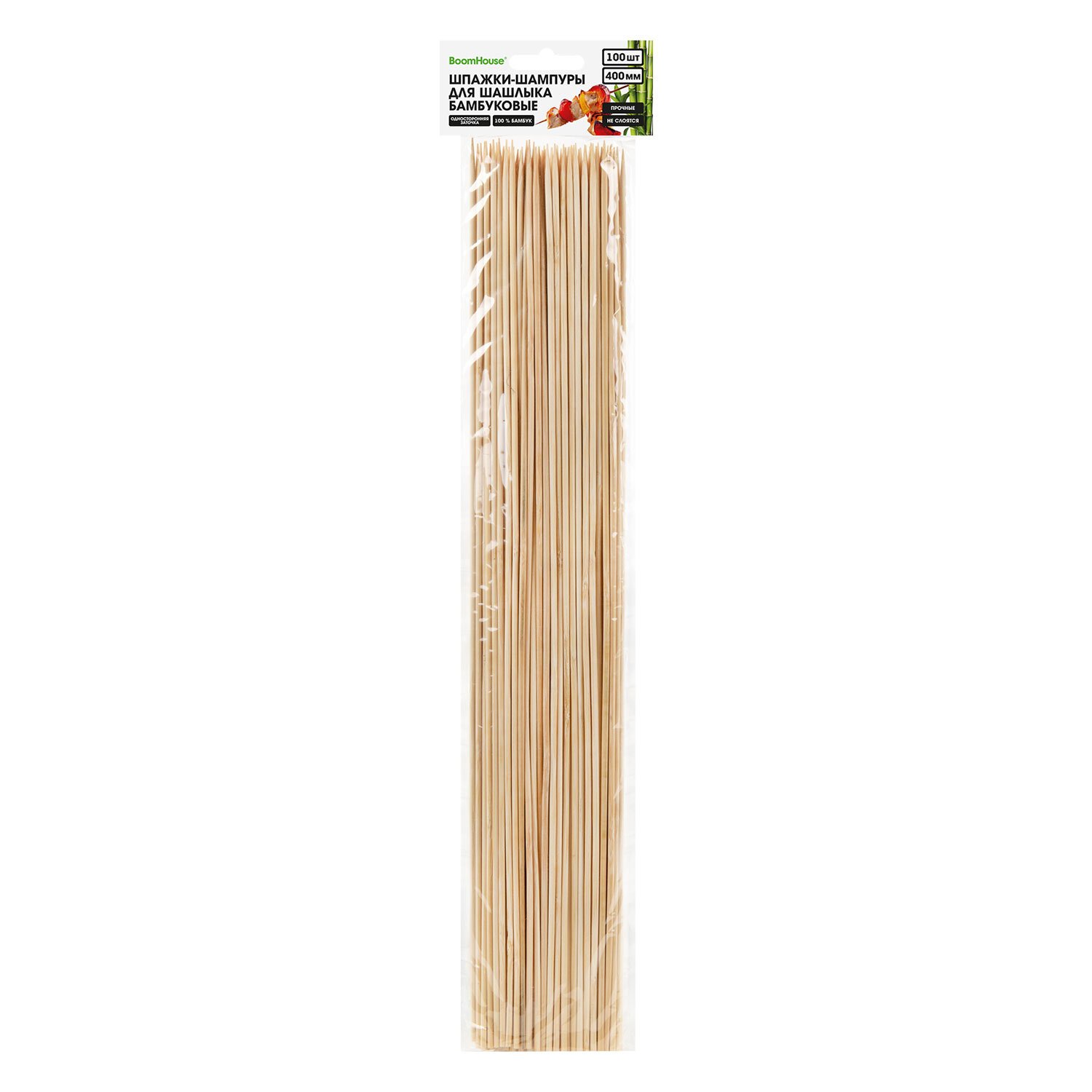 Шпажки-шампуры для шашлыка бамбуковые 400 мм, 100 штук, BOOMHOUSE, 701961