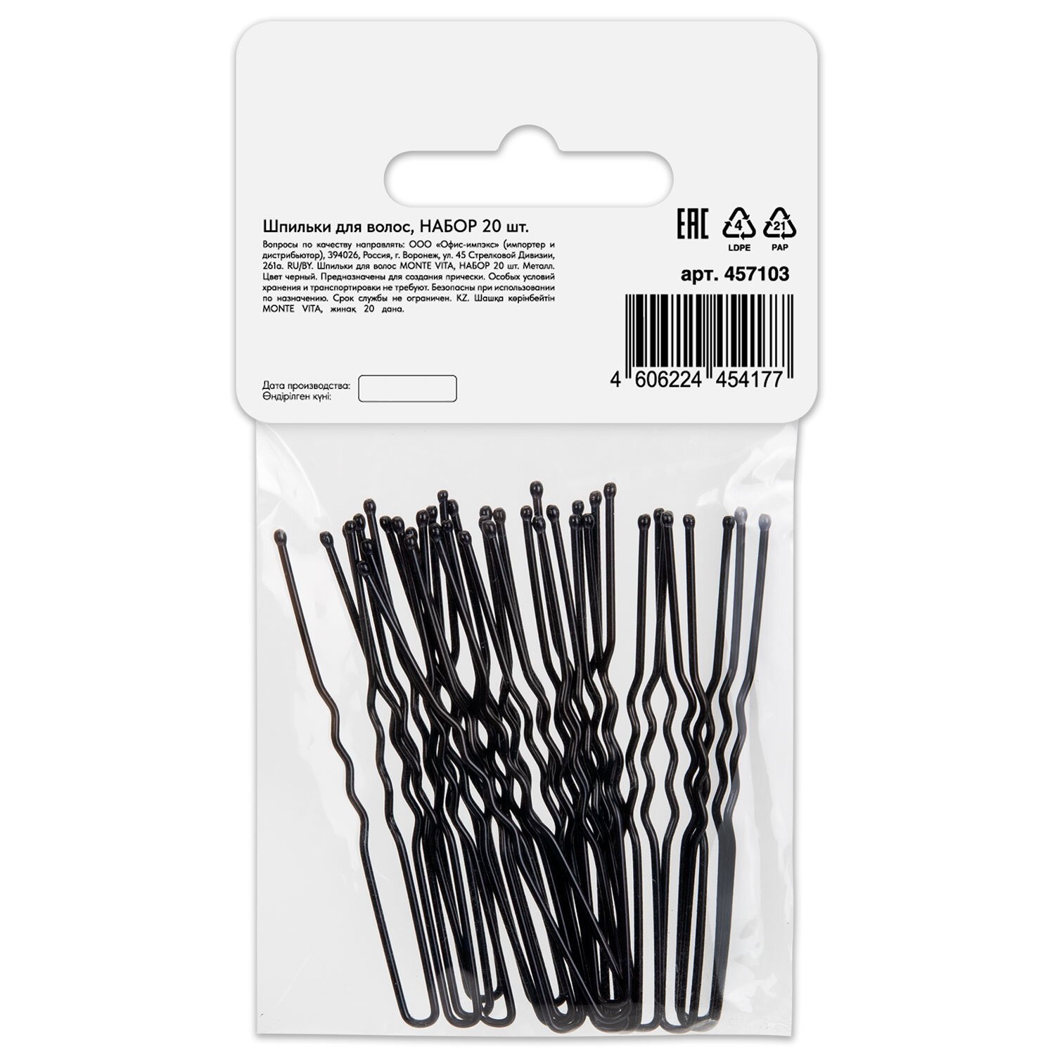 Шпильки для волос НАБОР 20 шт, 6 см, чёрный MONTE VITA 457103