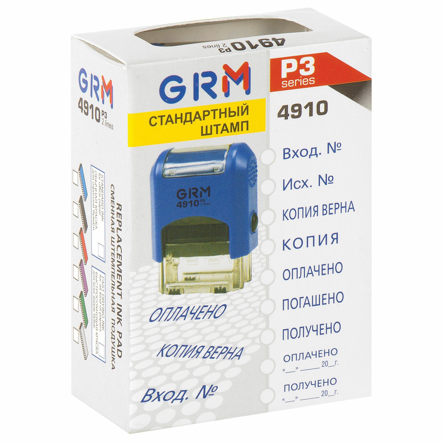 Штамп GRM 4910_Р3 с клише "Оплачено" применяется в бухгалтерии, на складе, в офисе. Надежная конструкция обеспечивает до 50 000 оттисков.
