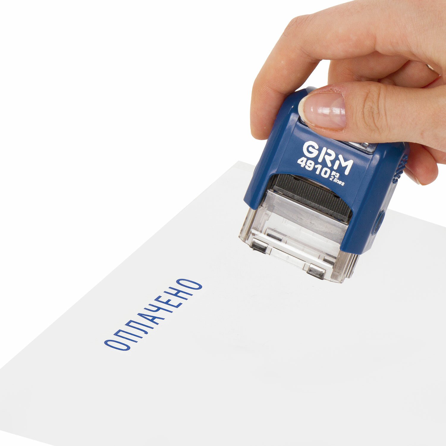 Штамп стандартный "ОПЛАЧЕНО", оттиск 26х9 мм, синий, GRM 4910 Р3, 110491010