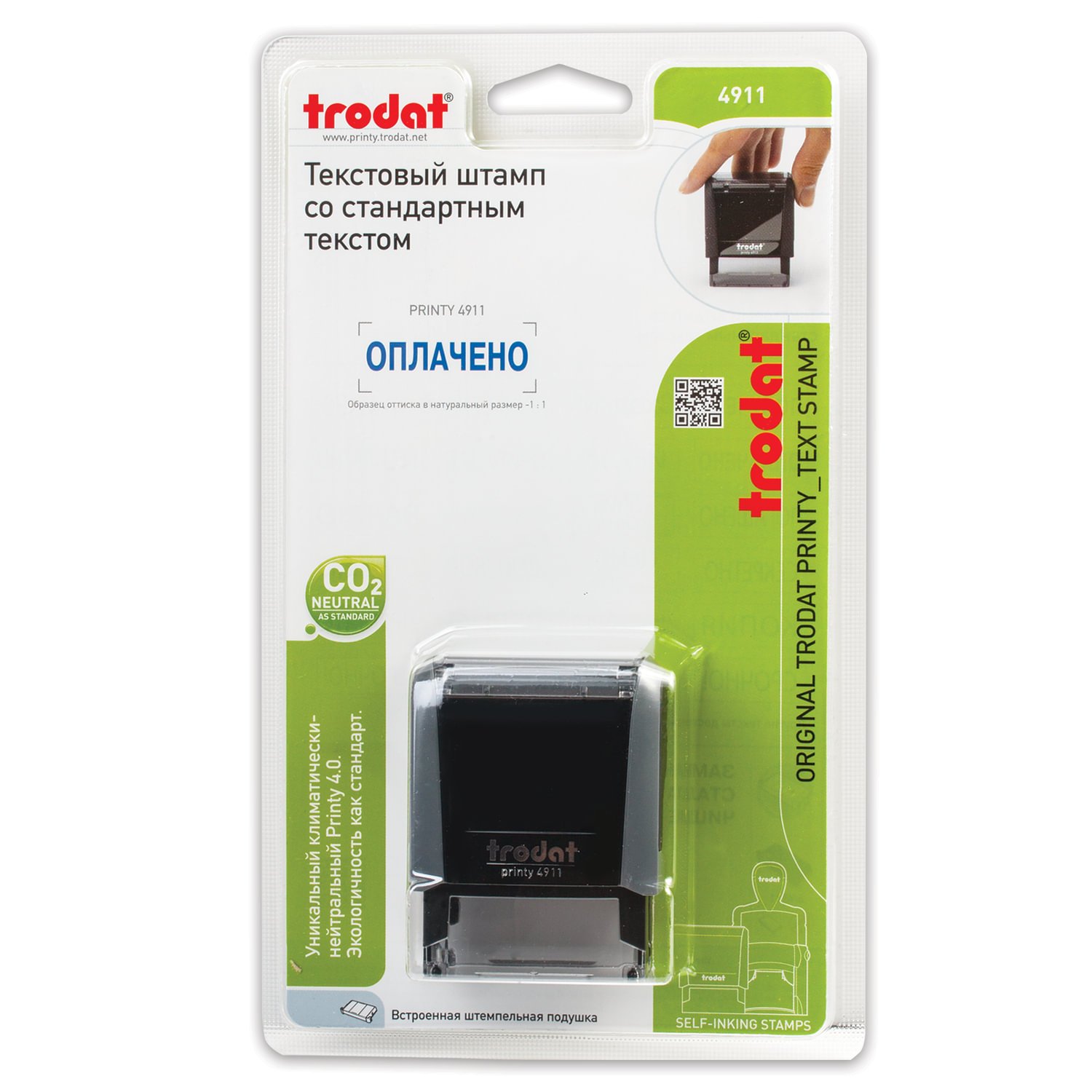 Штамп стандартный "ОПЛАЧЕНО", оттиск 38х14 мм, синий, TRODAT 4911P4-1.2, 53559