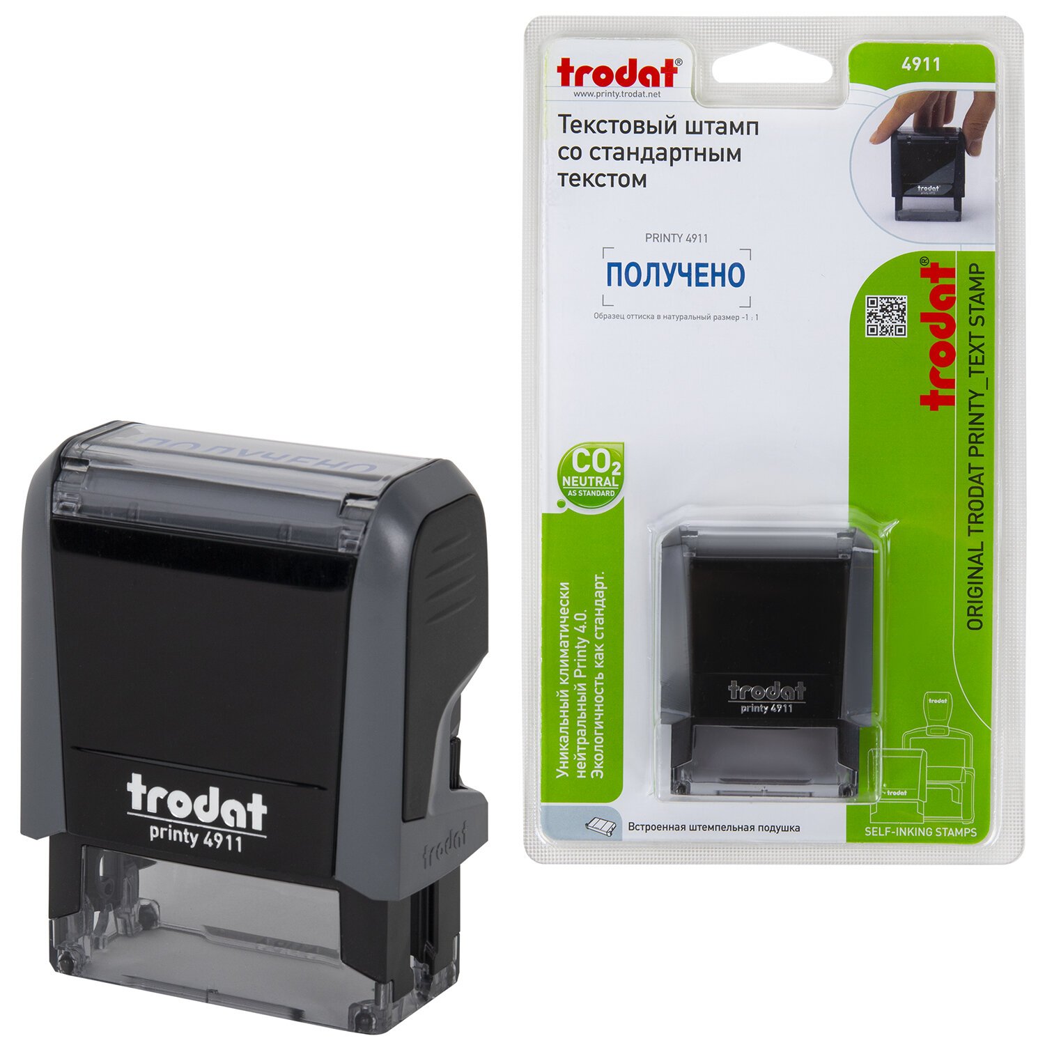 Штамп стандартный "ПОЛУЧЕНО", оттиск 38х14 мм, синий, TRODAT 4911P4-1.1, 53557